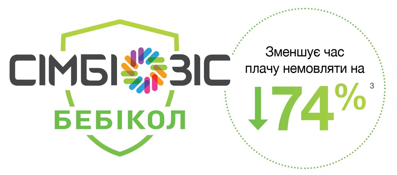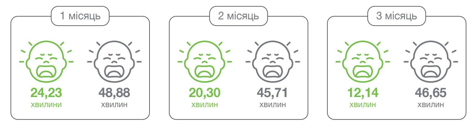 Хвилини щоденного плачу немовлят на штучному вигодовуванні в групі прийому SYMBIOSYS БЕБІКОЛ порівняли з групою плацебо протягом першого, другого та третього місяців лікування відповідно